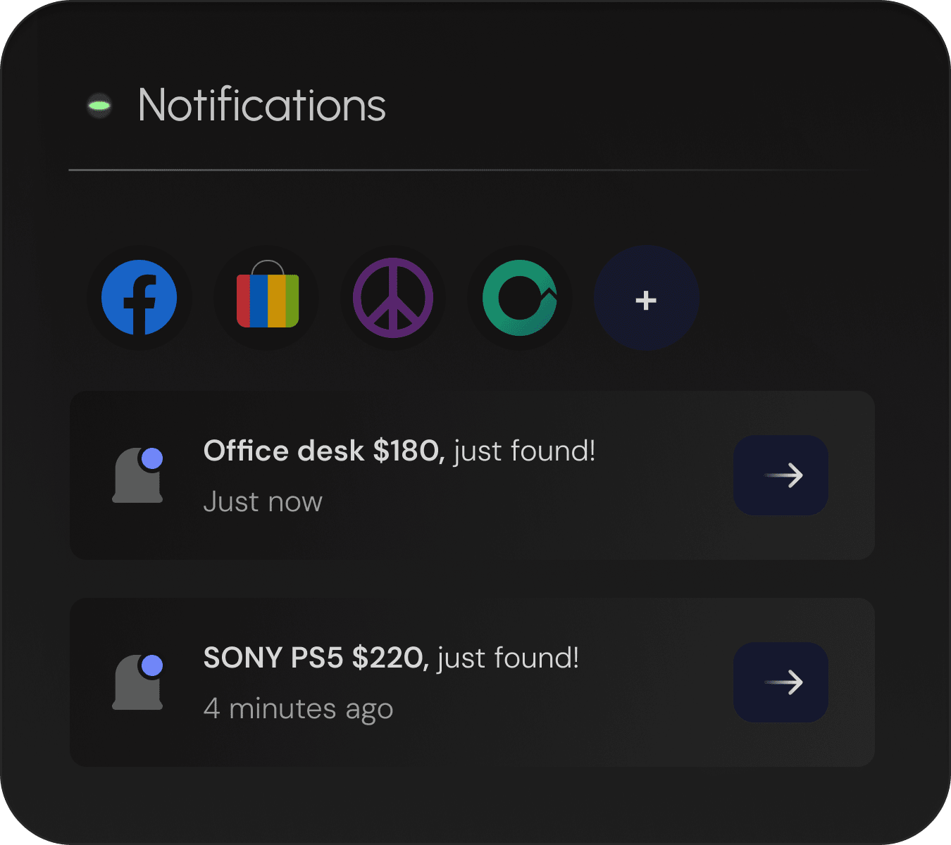 Find them all: Cars, phones, couches and more. From private sellers across Facebook, Craigslist, OfferUp, Kijiji, Gumtree, and more – as soon as they go live.