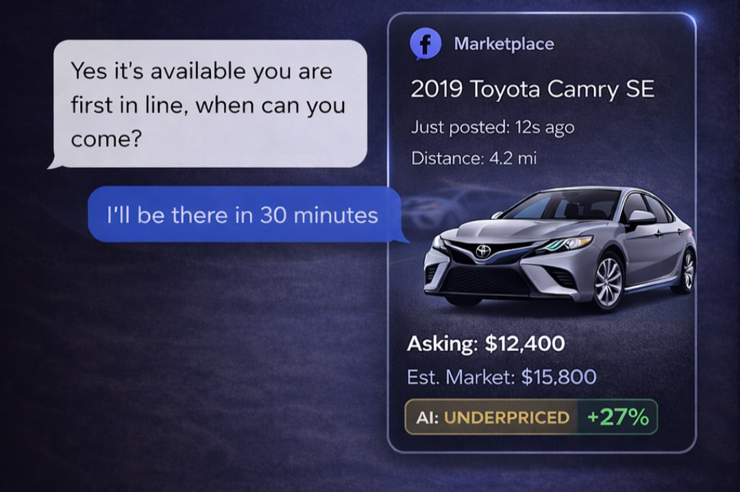 Two reasons: faster alerts and better deals. When you’re sourcing cars on Facebook, you’re stuck refreshing the site, scrolling past junk you’d never buy. Step away from your computer for a few minutes, and you miss the good stuff.